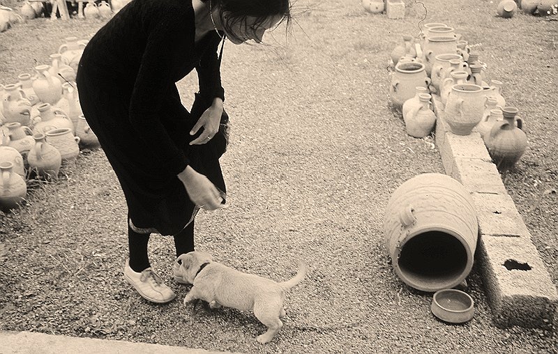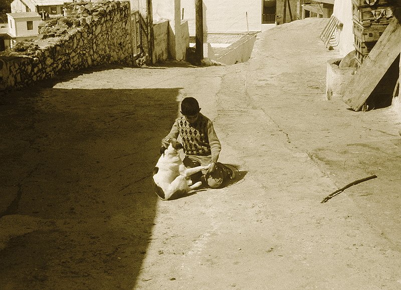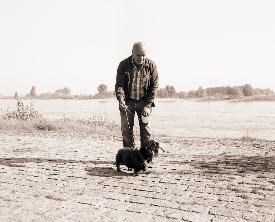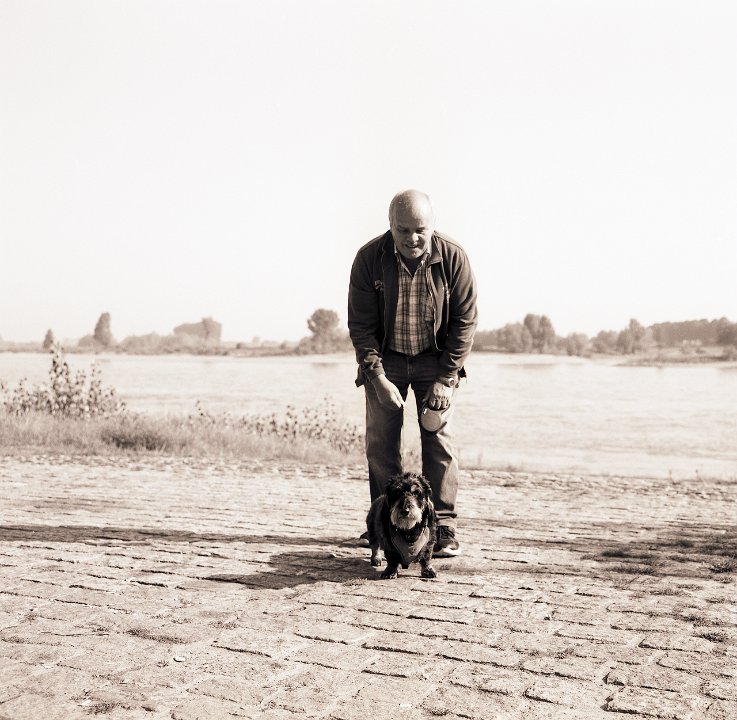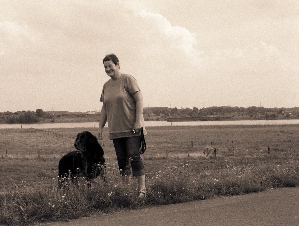 48 Mit kleinem Hund auf den See schauen Pentax MZ-S, SMC FA 1.9/43 Limited, Gelbfilter, Bergger Pancro 400 |