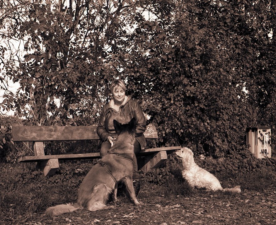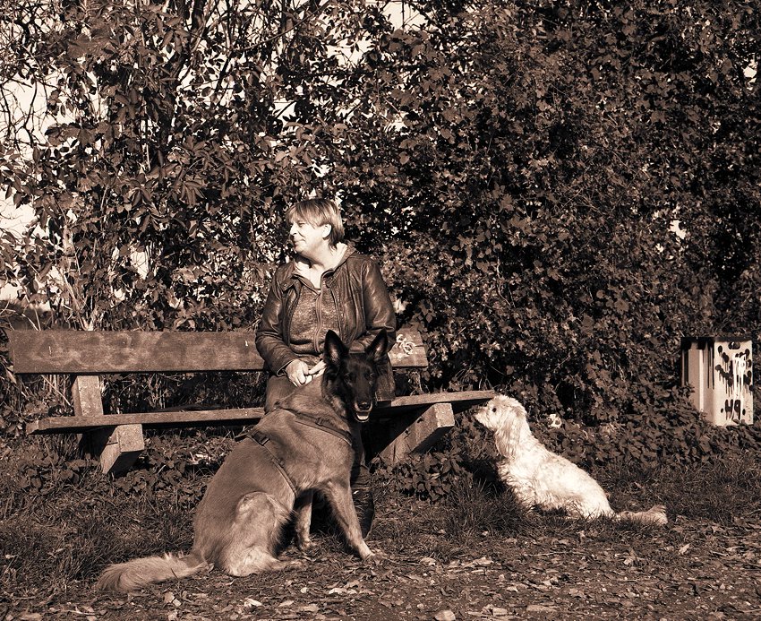 38 Bank am Feldrain mit Frau und Hunden Pentax 645N, 2.8/75, Adox CHS100@80 - 23.10.2015 - |