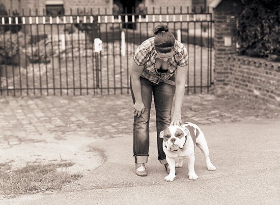 51 Frau mit Dobberman und Roller Pentax 67II, SMC 4.0/45, Ilford HP5plus@400 - |