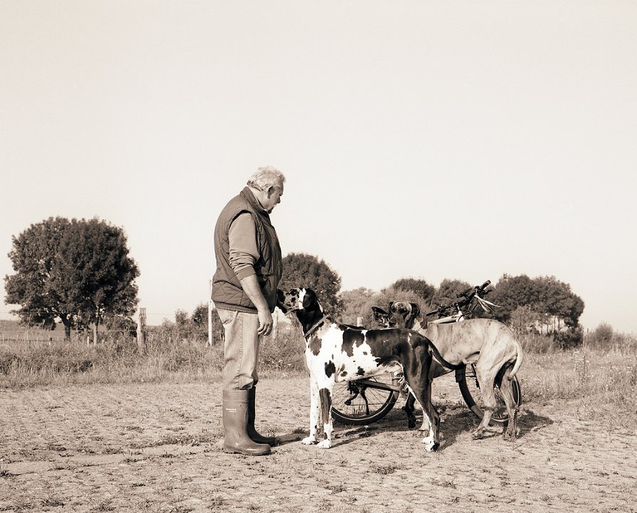 61 Boxerbegegnung im Morgenlicht Pentax 645N, SMC FA 2.8/45, Gelbfilter, Ilford Delta 400@250 |