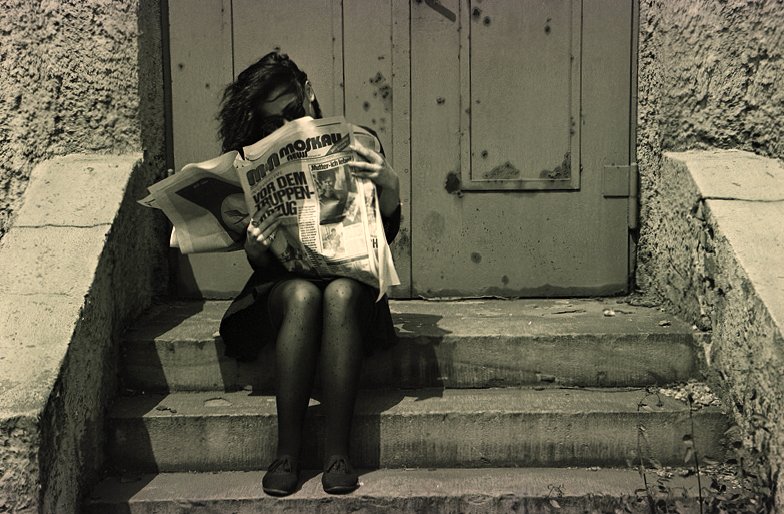7 Zeitunglesen Pentax 645N; Gelbfilter, 400TX/400 - |