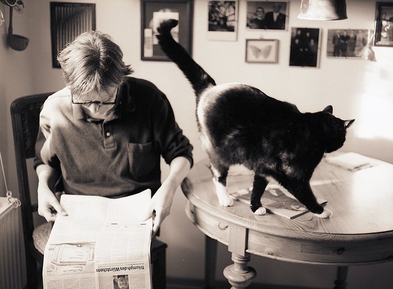20 Newspaper mit Katze Pentax K2, SMC 2.8/24, Adox Silvermax 100@64 |