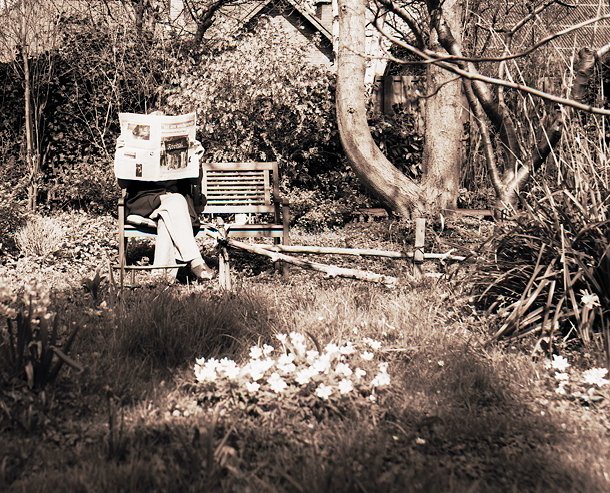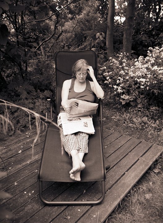 4 Zeitunglesen im Garten Pentax 6x7; 4.0/45; Adox CHM 400/250 - |