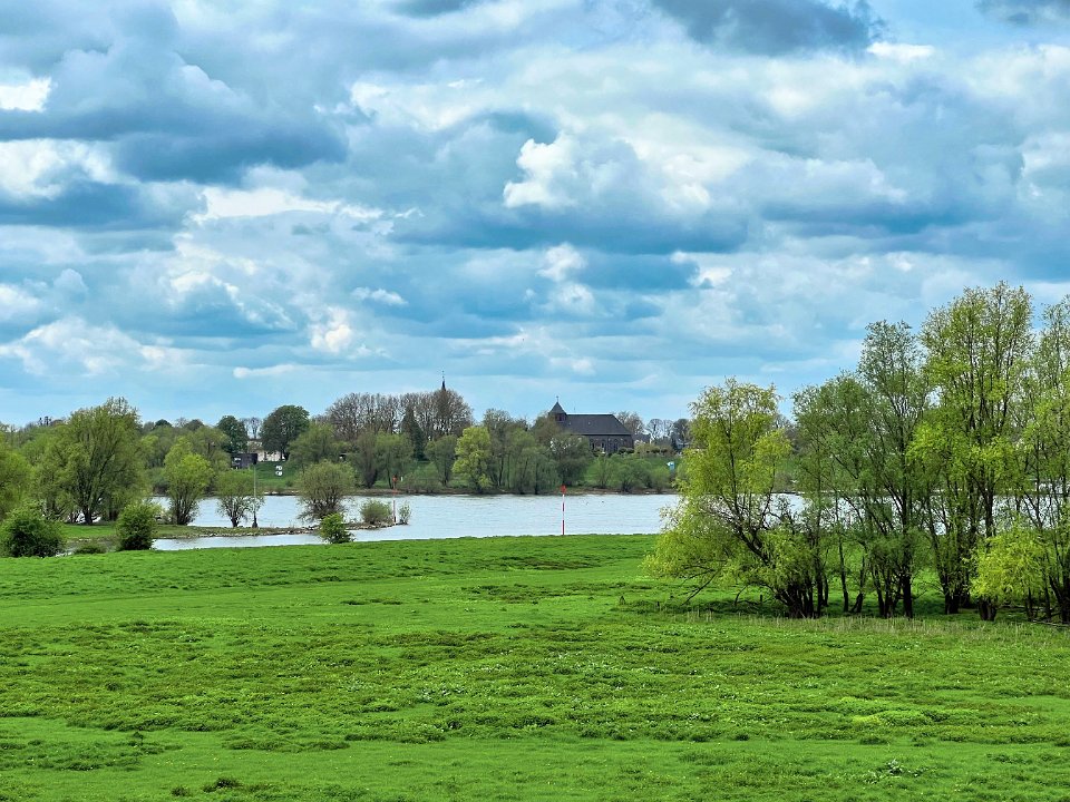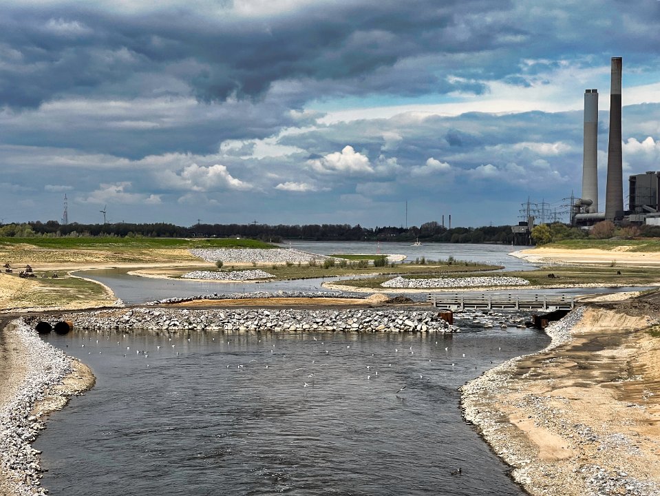 Blick zum Rhein mit Kraftwerk