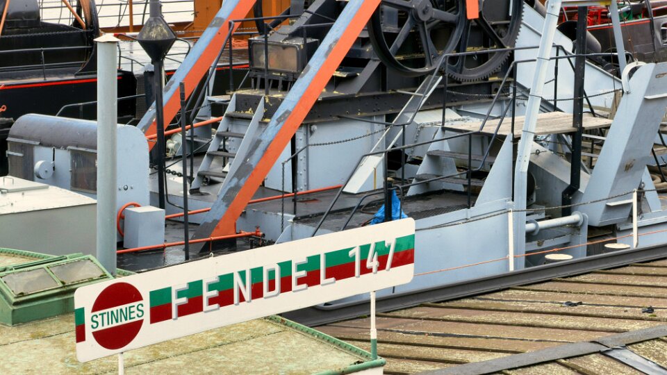 Detail Lastkahn, Bagger und Oskar Huber