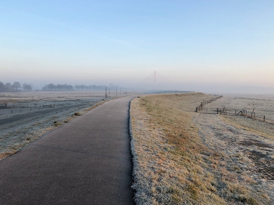 Die Rheinbrücke im Hochnebel