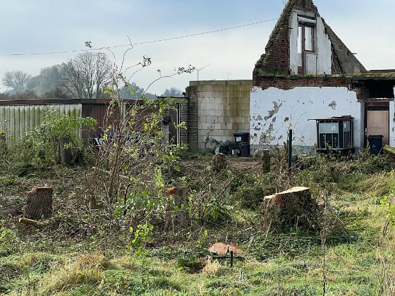 Erfreulich, alte Ruine aufbauen; erschreckend, Bäume abholzen