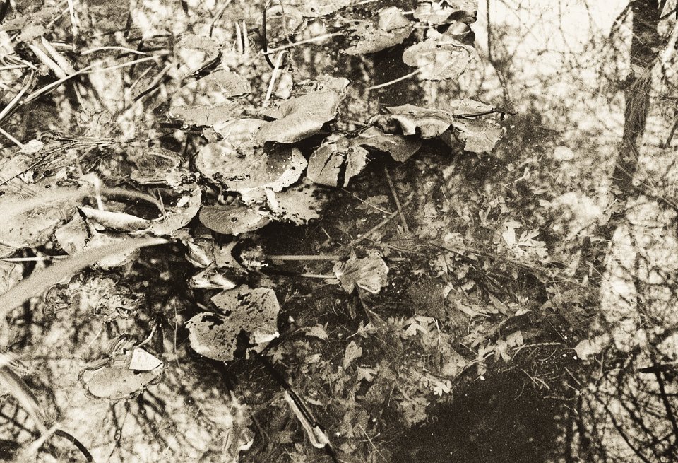13 Blätter im Teich Pentax K2, SMC 2.0/35, Gelbfilter, Bergger Pancro 400 - 31.12.2018 - |