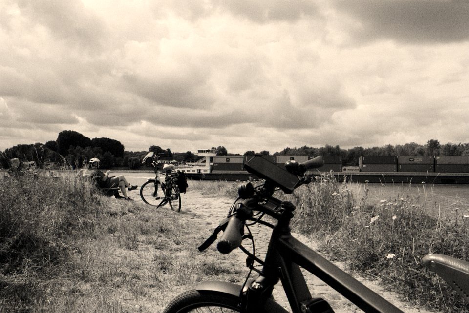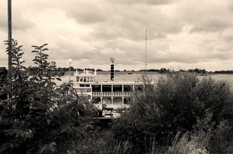 16 Blick von der Rheinbrücke Wesel Pentax Super A, SMC FA 1.8/31 AL Limited. Gelbfilter, Bergger Pancro400@250 |
