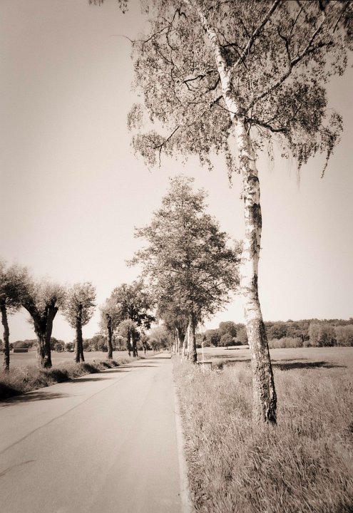 3 Die Birke an der Straße Pentax Super A, Soligor C/D wide auto 2.8/20 MC, Ilford Pan 100 |