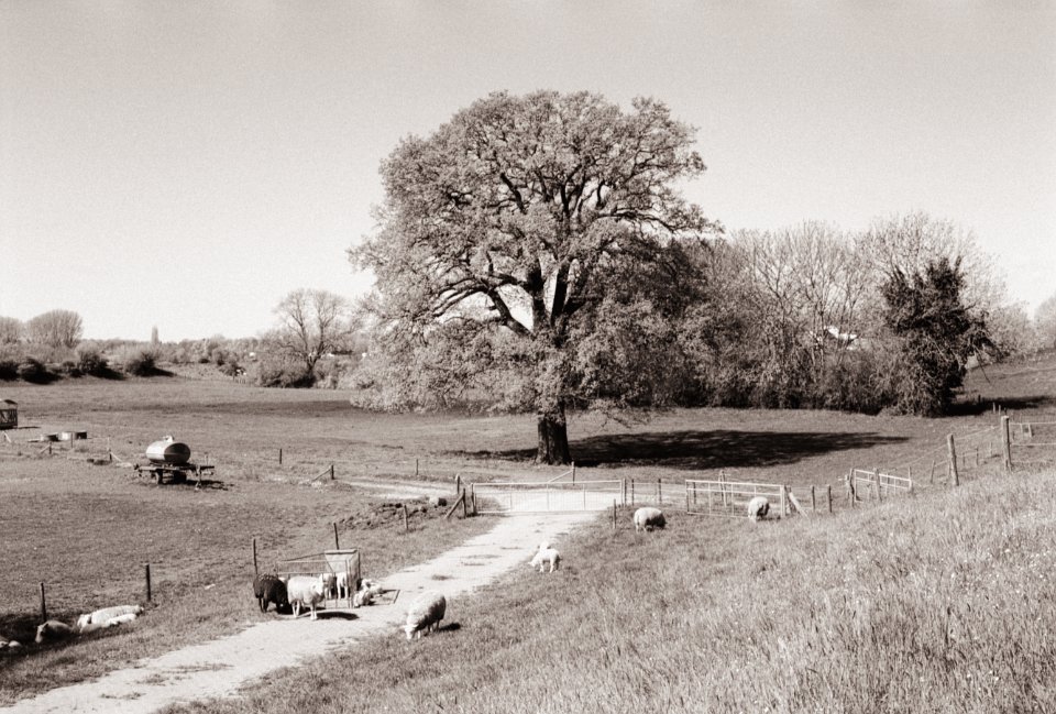 4 Schafe und ein mächtiger Baum Pentax MZ-S, SMC FA 1.9/43 Limited, Gelbfilter, Adox CHS 100II@64 |
