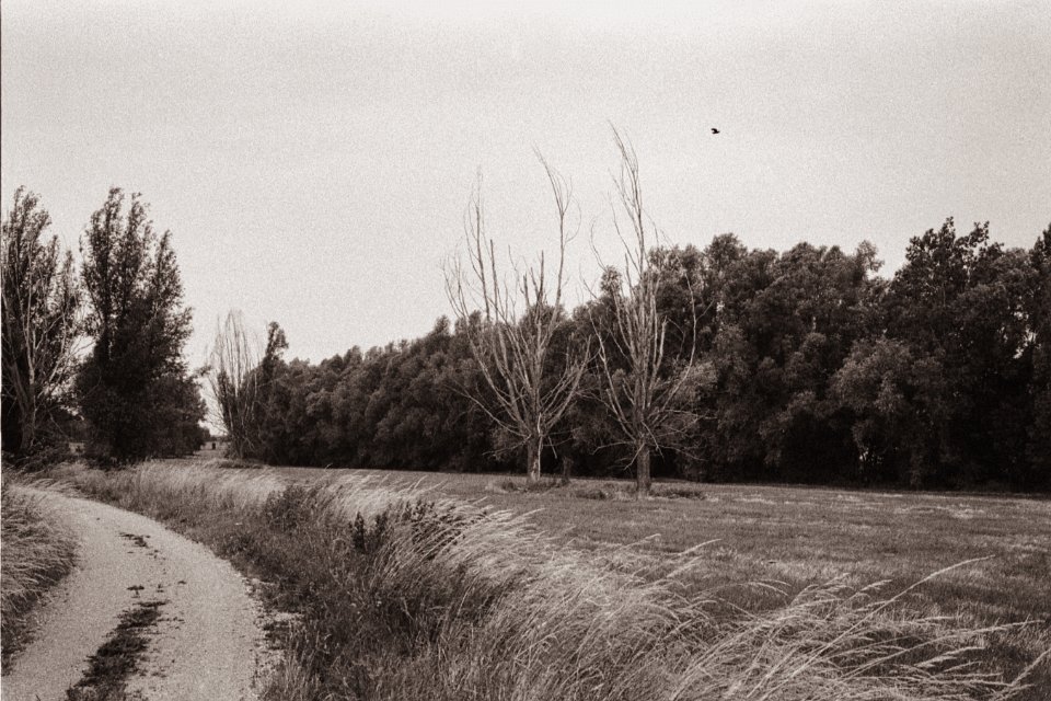 6 Weide und Fluss Pentax Super A, SMC Pentax-M 2.8/40; Orange Filter, Bergger Pancro400@200 - 25:06.2021 - |