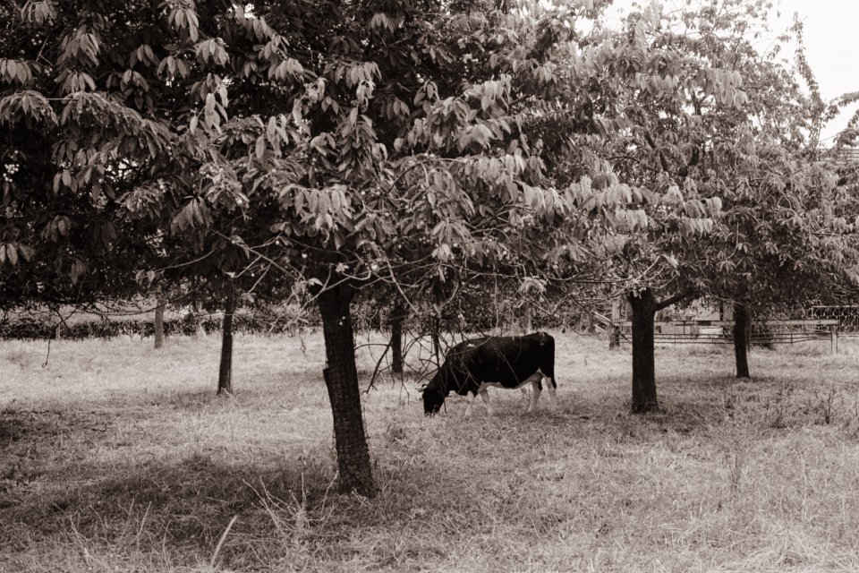 9 Unter Obstbäumen Pentax Super A, SMC Pentax-M 2.8/40; Orange Filter, Bergger Pancro400@200 - 25:06.2021 - |