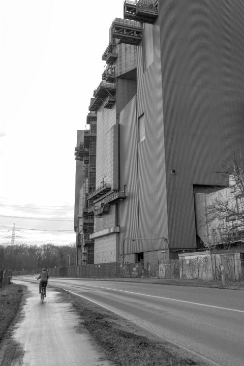 12 Radfahrerin am Kraftwerk PENTAX K-3 Mark III Monochrome, HD PENTAX - DA* 2.8/16-50 ED PLM AW - 21.02.2025 -