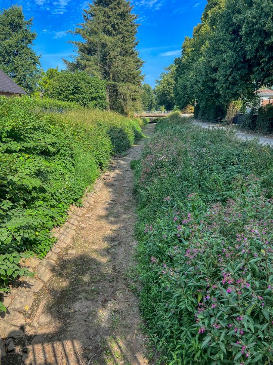 Dinslaken, der Rotbach ist ausgetrocknet