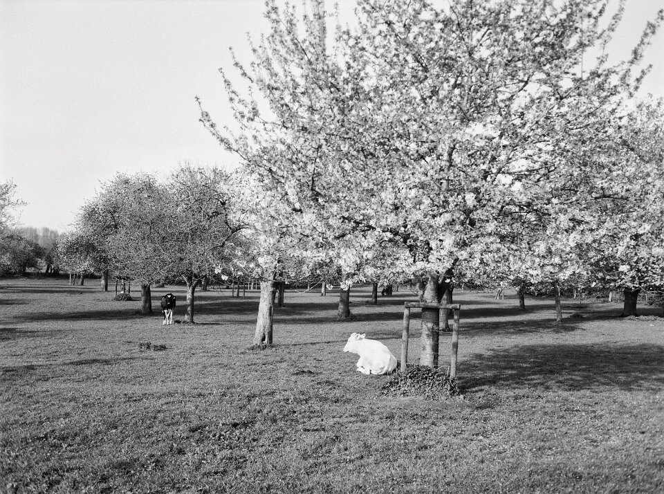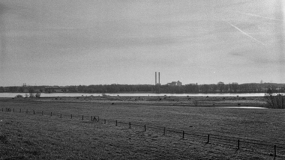 2 Rheinwiesen und Kühe am Flussufer Fuji GS 645 S prof. WIDE 60, Kentmere 400 Pan - 12.04.2026 - |