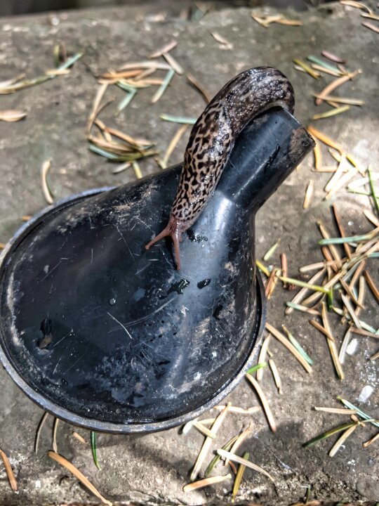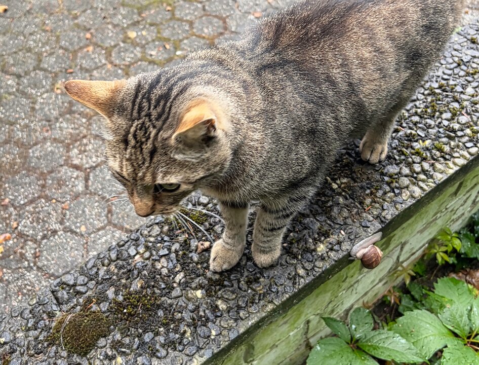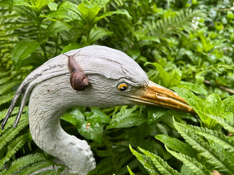 Kleine Schnecke auf dem Gartenreiher